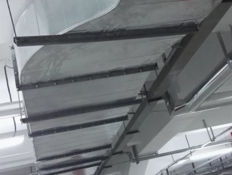 2、吊杆根据吊件形式,可以焊在吊件上,也可挂在吊件上,焊接后应涂防锈漆。当风管较长需要安装一排支架时,可先把两端安好,然后以两端的支架为基准,用拉线法找出中间支架的标高进行安装。